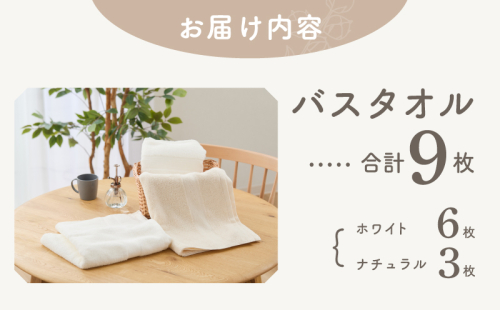 ホワイト&ナチュラル バスタオル 9枚【ホテル仕様 上質 厚手 吸水性 泉州タオル たおる ギフト 国産】 050F120