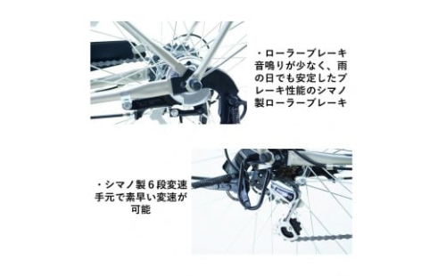 堺市に本社を置くシマノ製の外装6段変速機を採用で、長距離や坂道もラクに走れます。