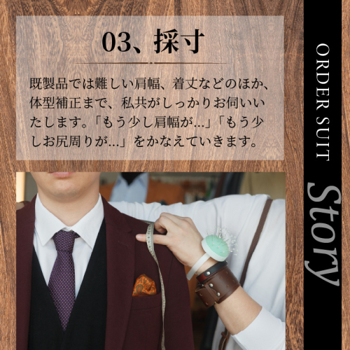 ●店舗まで採寸にお越しいただくことが難しい場合は、スーツをお送りいただくことでの採寸も可能。