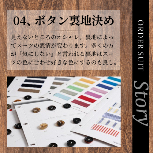 選べる裏地や釦でセンスが光ります。