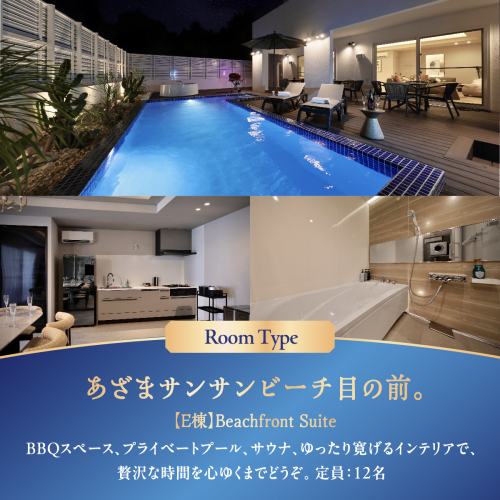 あざまサンサンビーチ目の前。BBQスペース、プライベートプール、サウナ、ゆったり寛げるインテリアで、贅沢な時間を心ゆくまでどうぞ。