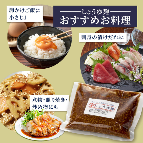 - 醤油×こうじのコク深い味わい。卵かけご飯、納豆、刺身、煮物など幅広く活躍