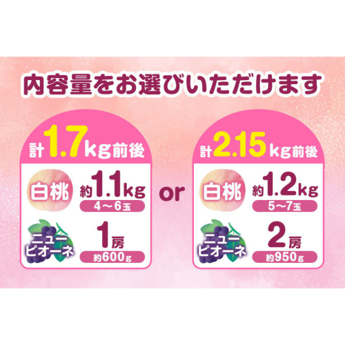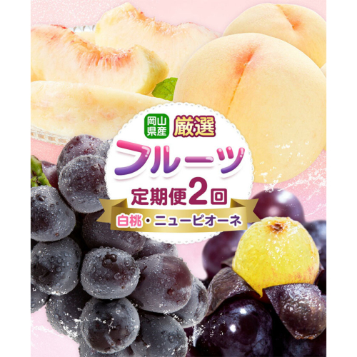 - 【先行予約】岡山県産 厳選 フルーツ 定期便 2回 白桃 ニューピオーネ 選べる 計1.7kg前後 計2.15kg前後 株式会社藍《2026年7月上旬-9月末頃出荷》 岡山県 浅口市 岡山県産 白桃 桃 ニューピオーネ 種無し 旬 フルーツ 果物 くだもの 送料無料 【配送不可地域あり】
