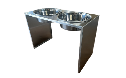 大きなわんちゃんの飼い主さん達はご飯を食べさせるための台をいろいろと工夫して使っている方が多いと思います。お茶碗がずれてしまったり、食べこぼした物がきれいに洗えなかったりと困った事があると思います。私もそんな飼い主の一人でした。幸い金属加工業をしておりましたので、社長に相談してうちの愛犬用にごはん台を作ることにしました。知人のドッグランに置いていただき不便さはないと言っていただいています。オールステンレスですのでお手入れも柔らかいスポンジで優しく洗っていただき優しく水をふき取っていただければ清潔に長くご使用いただくことができます。愛犬との素敵な生活の一部としてご使用いただければ嬉しいです。