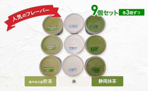 手作りジェラート 人気フレーバー9個セット(3種類×3個)アイス ジェラート 米 抹茶 煎茶 デザート スイーツ 食べ比べ セット 詰合せ 森町 静岡県 2433064 - 静岡県森町