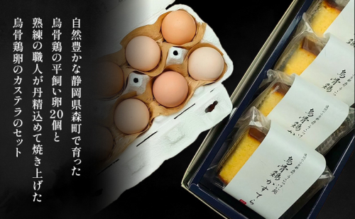 卵 カステラ 静岡 平飼い烏骨鶏の卵20個とカステラのセット たまご 鶏卵 カステラ 和菓子 静岡県 森町 2433088 - 静岡県森町