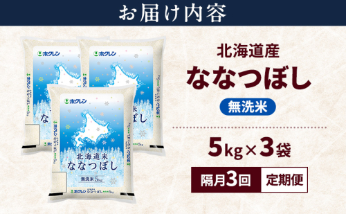 【隔月3回定期便】北海道産 ななつぼし 無洗米 15kg 米 特A 獲得 白米 ごはん 定期便 定期配送 隔月3回 道産米 ブランド米 15キロ お米 ご飯 米 北海道米 JAふらの ホクレン ホクレン米 送料無料 北海道 富良野市