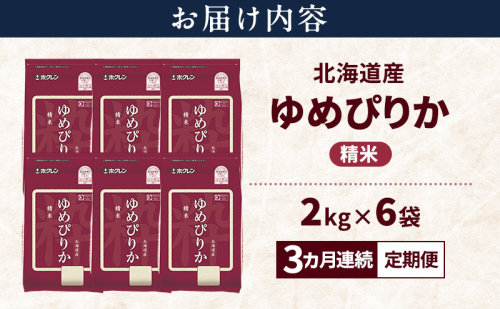 (精米)ホクレンゆめぴりか12kg(2kg×6袋)を毎月10~20日に発送いたします。