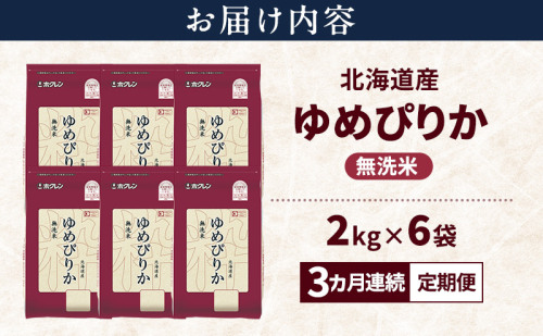 【3ヵ月連続定期便】北海道産 ゆめぴりか 無洗米 12kg 米 特A 獲得 白米 ごはん 定期便 定期配送 3ヵ月 道産米 ブランド米 12キロ お米 ご飯 米 北海道米 JAふらの ホクレン ホクレン米 送料無料 北海道 富良野市