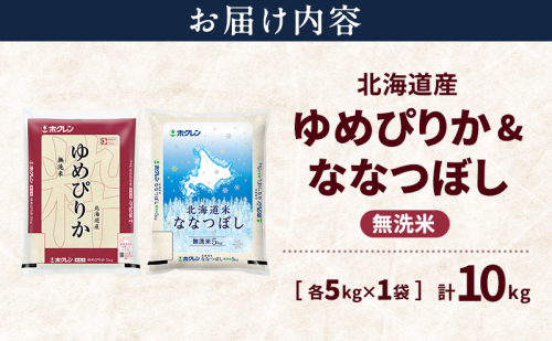 (無洗米)「ホクレンゆめぴりか5kg」と「ホクレンななつぼし5kg」をセットにしてお届けします。