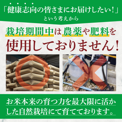 「農薬:栽培期間中不使用」、自然のチカラだけで手間暇かけて、丹精込めて作った身体に良く、クセのない美味しいお米です。