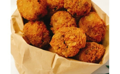一度にたくさんのボールメンチカツを油の中に入れますと油の温度が下がり破裂の原因になります。