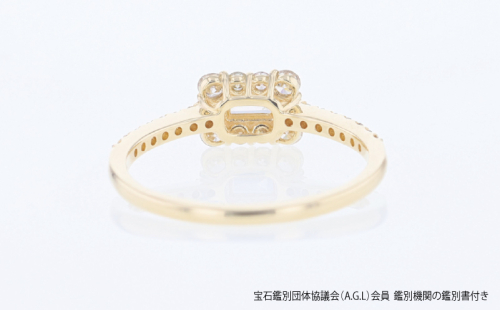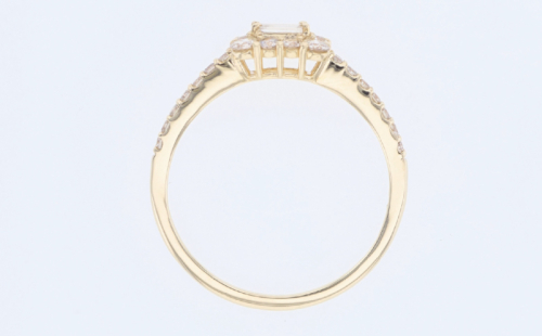 シャープな輝きが魅力のバゲットカットダイヤに、アームや取り巻き部分へ繊細なラウンドカットダイヤを添えた上品なデザインリング。 K18イエローゴールドの温かみのある輝きが、ダイヤモンドの透明感を一層引き立て、手元を華やかに彩ります。 シンプルながらも存在感があり、人とは違う洗練されたスタイルを楽しめます。