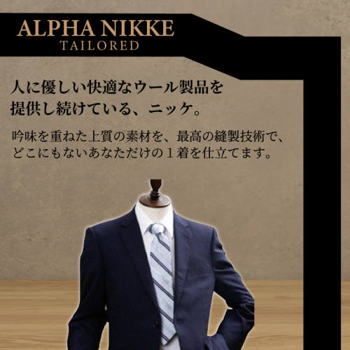 やわらかく艶があり、しなやかなウールの風合いを生かしたオーダーならではの抜群のフィット感です。