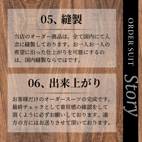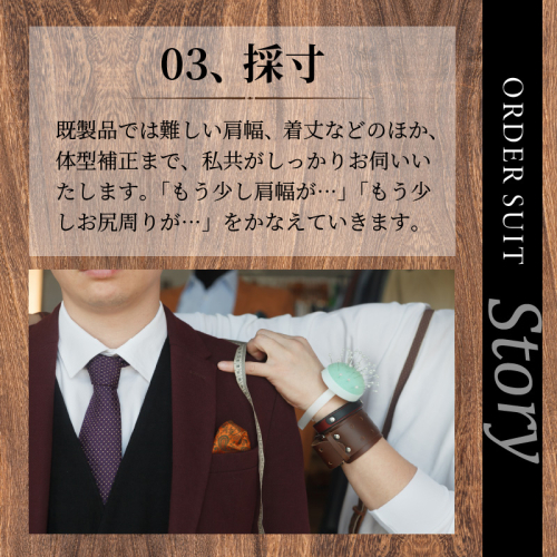 ●店舗まで採寸にお越しいただくことが難しい場合は、スーツをお送りいただくことでの採寸も可能。