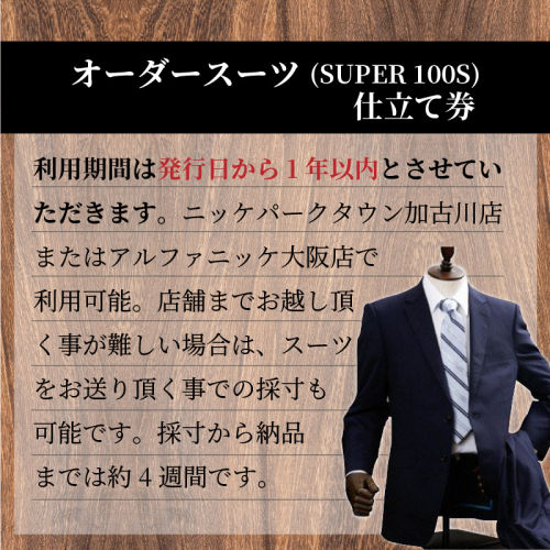 - オーダースーツ(SUPER100S) <ベスト付きスーツ(スリーピース)>《 スーツ オーダースーツ ウール オーダーメイド ビジネス 》【2503Q05104】