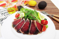【説明】かつおの表面を炙ったたたきを柚子塩たれに漬け込みました。さわやかな味わいで野菜との相性もバツグン。リピーター続出です。