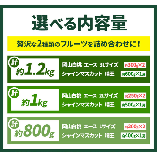 - 【先行予約】岡山県産 岡山白桃 エース L~ 3Lサイズ シャインマスカット 選べる 計 800g 1kg 1.2kg 詰合せ 株式会社 はちや《7月上旬-8月下旬頃出荷》もも 岡山 国産 フルーツ 果物 岡山県 浅口市 フルーツ モモ 果物【配送不可地域あり】