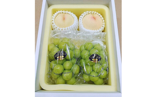 もも ぶどう 2026年 先行予約 詰合/白桃 2玉(1玉220g以上)・シャインマスカット 晴王 2房(1房480g以上) 化粧箱入り 岡山県産 国産 フルーツ 果物 ギフト