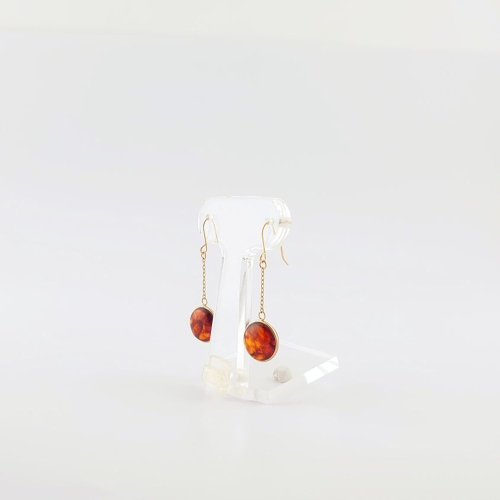 • Amberlogue ピアス 丸(金属素材:K10 琥珀:直径9mm サイズ:全長28mm)