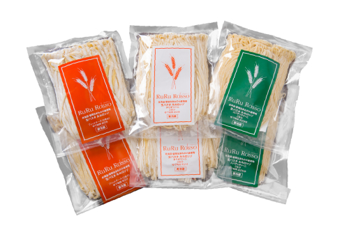 生パスタRuRurosso(スパゲッティーニ/タリオリーニ/フィットチーネ): 小麦粉(南留萌産)、全卵、でん粉、小麦蛋白、植物油/酒精、ソルビット、打粉(加工でん粉)、(一部に小麦・卵・大豆を含む)