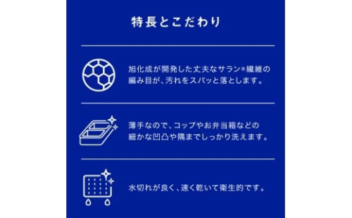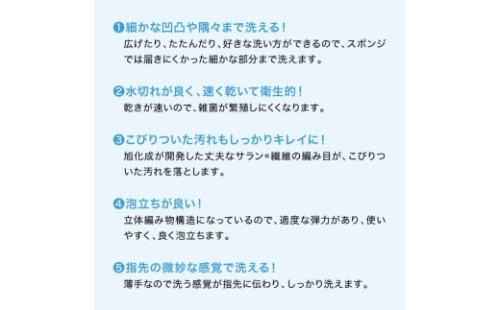 【説明】 隅々まで洗え、乾きが速くて衛生的なあみたわし! 1.立体編み物構造! 2.細かな凸凹や隅々まで洗える! 3.こびりついた汚れもしっかりキレイに! 4.水切れが良く、速く乾いて衛生的! 【地場産品基準】 2号:市内において原材料の主要な部分が生産されている品(主原材料名:ポリ塩化ビニリデン、市内での生産割合:74%)