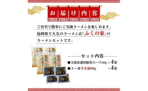 - \ポスト投函/【月間1万人来店!】本場久留米の味!「ふくの家」濃厚豚骨ラーメン4食 ゆうパケットでお届け!【Z4-001】