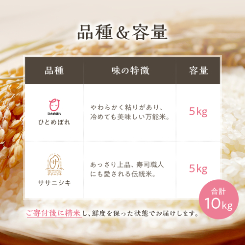 【お礼の品内容】ひとめぼれとササニシキ各5kgの精米セット
