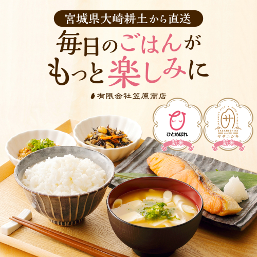 ふるさと納税で人気の宮城県・大崎耕土産ブランド米を精米したてで直送。 世界農業遺産に認定された豊かな大地で育まれた『ひとめぼれ』と、寿司職人に愛される伝統米『ササニシキ』を各5kgずつ食べ比べできる贅沢セットです。 ふっくらつややかで冷めても甘みが続く自慢のお米は、毎日の食卓やお弁当、お寿司にも最適です。 ◇こだわり 宮城県大崎市に広がる田園「大崎耕土」。 この豊かな大地は世界農業遺産に選ばれた日本有数の米どころです。 清らかな水と肥沃な土、そして農家の情熱。 そのすべてが一粒のお米に詰まっています。 農家直送×精米管理だからこそ、届いた瞬間から鮮度が違います。 ◇代表メッセージ 世界に誇れる大崎耕土の恵みを、一番美味しい形でお届けしたい。 寄付してくださる皆様のご家庭に、笑顔の食卓をお届けできることが何よりの喜びです。