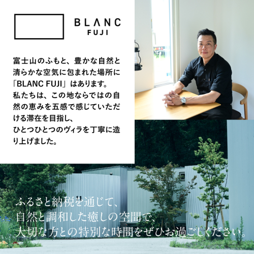 富士山のふもと、豊かな自然に囲まれた「BLANC FUJI」は、全室独立型のヴィラタイプホテルです。