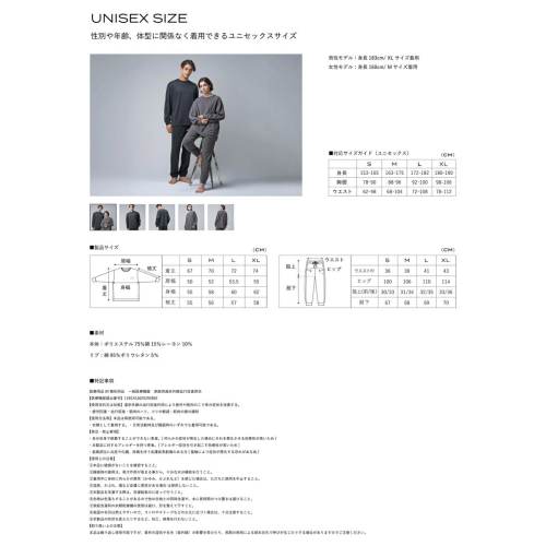 ブレインスリープ ウェア リカバリー 上下セット (チャコールグレー・Lサイズ) リカバリーウェア スリープウェア ナイトウェア ルームウェア ユニセックス 一般医療機器 パジャマ 疲労回復 血行促進 【ブレインスリープ】akn103-07