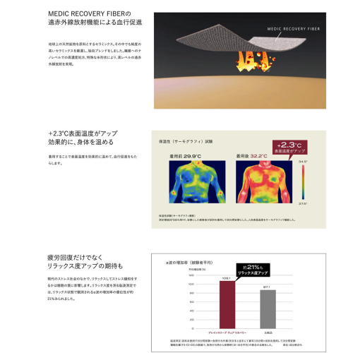 独自加工で高濃度のセラミックスを生地に練り込み、特殊な糸形状で輻射熱を高めて高いリカバリー効果を実現。