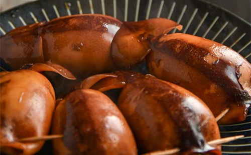 お米を詰め込んだ調理済のいかめしを付属のたれで煮込むだけの簡単調理。