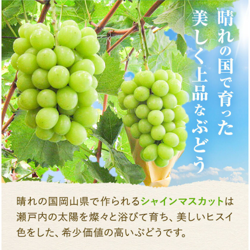 - 【先行予約】ぶどう シャインマスカット 1房 たけまさぶどう園 《9月上旬-10月中旬頃出荷》岡山県 浅口市 フルーツ デザート おやつ マスカット 果物 国産 岡山県産 くだもの 青果物 送料無料【配送不可地域あり】