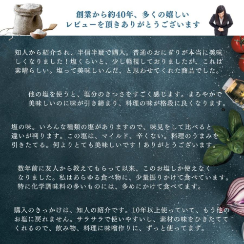 【どんな塩? 火入れせず自然の風と天日の力で生まれた塩】