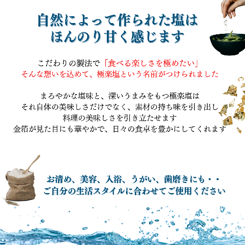 - 天日干し2年 火入れしない生の塩 「極楽塩」 1kg×5袋 金箔 貝カルシウム入り 食べる楽しさを極め こだわりの製法 塩 食塩 食卓塩 海塩 調味料 ミネラル ソルト
