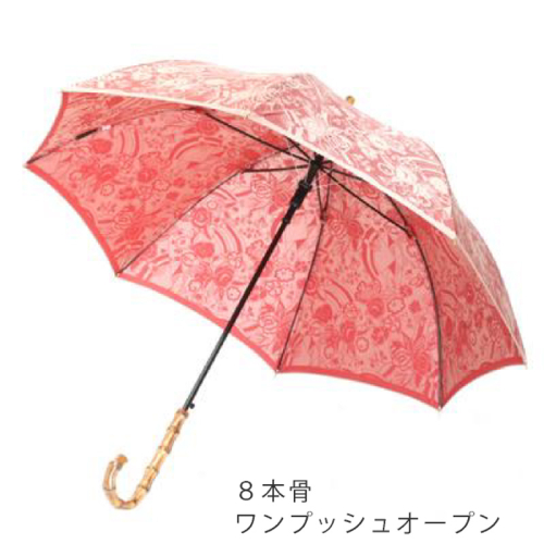 【槙田商店】晴雨兼用長傘 kirie 更紗 ルージュ | 傘 かさ 雨具 高級 晴雨 兼用 UV 日焼け ギフト ファッション 日傘 プレゼント 化粧箱 老舗 プレゼント お祝い 母の日 ギフト