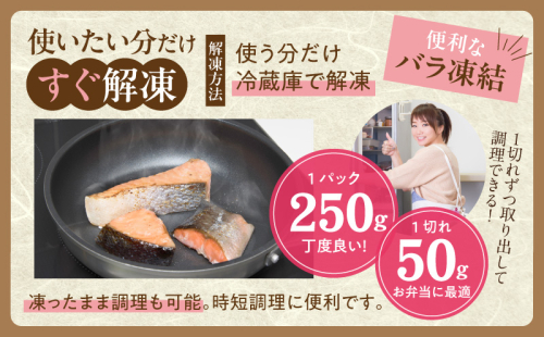 約50gの【お弁当サイズ】に仕上げた、銀鮭の切り身です。
