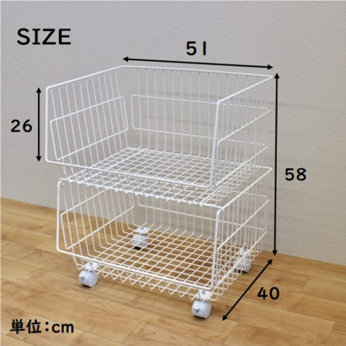 徹底したシンプル構造と省スペースにこだわった2段重ねるバスケットワゴンです。