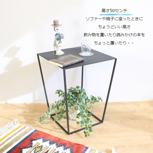 - サイドテーブル 黒 おしゃれ 北欧 角型 組立不要 完成品 アイアンテーブル ソファーサイド ミニテーブル テーブル おしゃれ シンプル 天板 40cm サーキュレーター 台 花台 リビング 玄関 寝室 テーブル 高さ50cm スクエアサイドテーブル