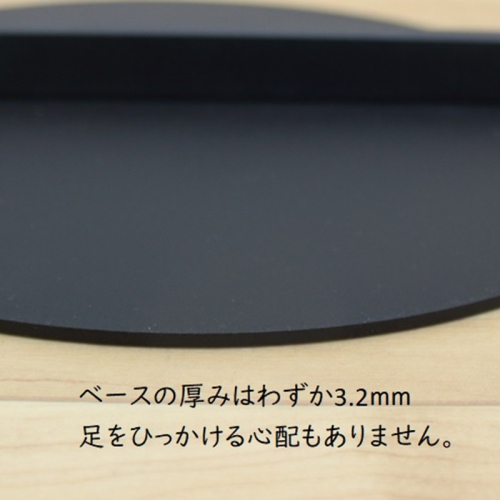 足元は、厚さわずか約3mmの円盤型ベースを採用し、スクエアとサークルのみで構成された無駄がないスッキリとしたデザインで、どんなお部屋にも自然と馴染みます。