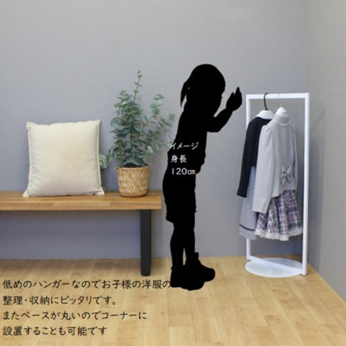 - 円盤ベースハンガーW400 白 ロータイプ ハンガーラック おしゃれ 子ども キッズ 子供 パイプハンガー スリム シンプル アイアン 省スペース 子ども用 洋服かけ 傘掛け ハンギング 収納 玄関収納 高さ95cm