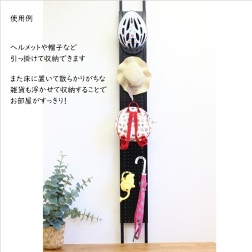 突っ張りパンチングパネルW200 黒 壁面収納 つっぱり 有孔ボード 20cm マグネットボード 壁掛け ラック スチールパネル パンチング ペグボード パンチングボード スリム 省スペース 玄関 キッチン 洗面所 ヘルメット 日傘