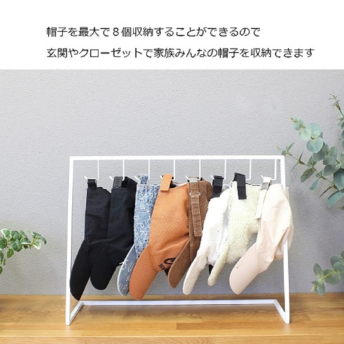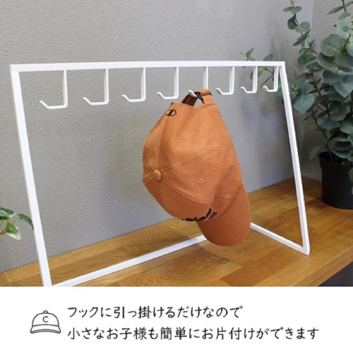 最大8個掛けることができるので、家族みんなのいつもの帽子をまとめて収納できます。