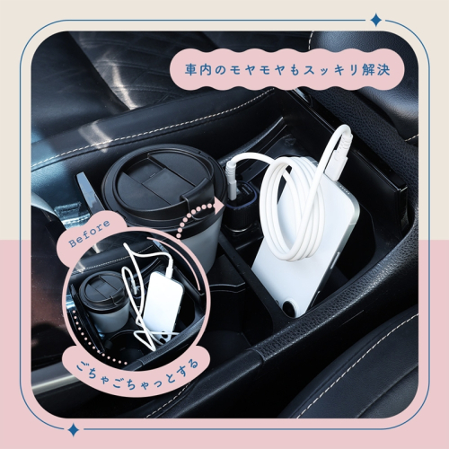散らかりがちな車内の充電ケーブルも、ケーブルがまとめられるので、すっきりとできます。