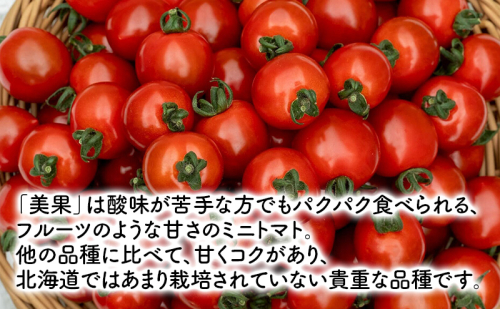 ・「美果」は、酸味が苦手な方でもパクパク食べられる、フルーツのような甘さのミニトマトです。