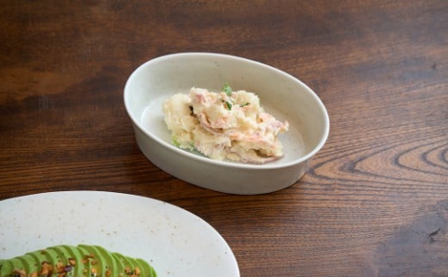 楕円のプレートとボウルセット プレートは刺身皿やお肉など盛りつけられます。 深さのあるボウルです。サラダや汁物にもお使いいただけます。 ※手作業のため色ムラや釉垂れなど個体差がございます。予めご了承ください。 ※画像はイメージです。セット内容はプレートとボウルの2点です。 窯元:金善製陶所
