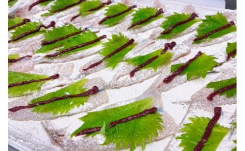 職人が一つ一つ開きにして丁寧に小骨を取り除き、大葉と梅肉を挟んでいます。