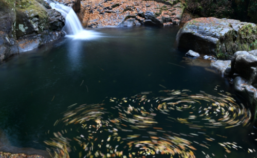 岩肌を伝って流れ落ちる水の音、木々を抜ける風、差し込む木漏れ日が、心を静かにほどいてくれます。