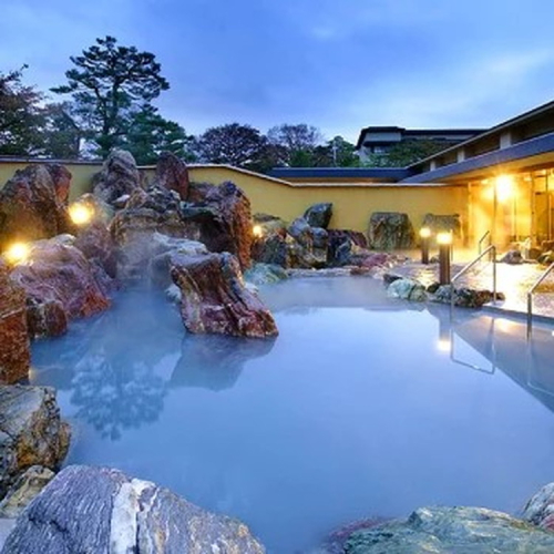 四国を中心に全国各地から珍しい石を集め、立山連峰に見立てて組み上げた岩風呂や、広々とした露天風呂が人気です。ご家族でお入りいただける貸切風呂やマッサージ、あかすり(※別途料金)も人気です!